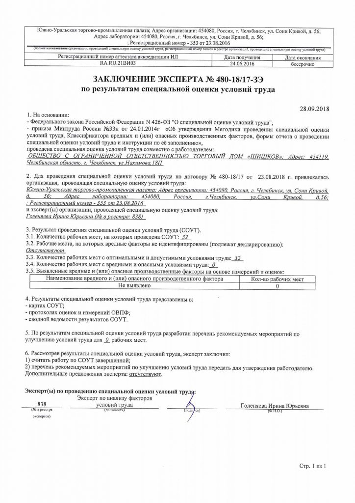СПЕЦИАЛЬНАЯ ОЦЕНКА УСЛОВИЙ ТРУДА